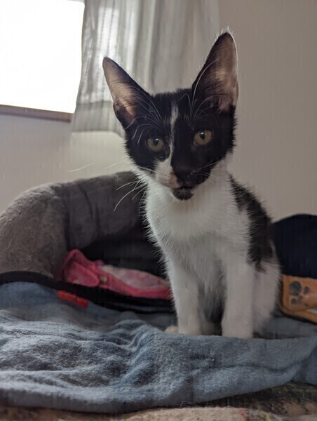 | 特徴(性格など) | ◆フォーくん 人にも猫にも甘えん坊の白黒男子 ○ 月齢6ヶ月半くらい(2023年2月初旬時点)の白黒の男の子です。 ○ しっぽは短くて丸まっています。ちいさなうちわがついているような形がチャームポイントです。 ○ いつも人か猫にくっついていたい甘えん坊です。 ○ おもちゃで遊ぶのも大好きです。 ○ 甘えん坊なのでお留守番の少ないご家庭を希望します。 ○YouTubeにも動画をあげています。こちらもご覧下さい。 「フォー」 https://youtu.be/_nz6n2k9I3U ☆ワクチン2回接種済み。不妊手術済み。 ☆猫エイズ、猫白血病ともに陰性。 ○2/26(日)開催の譲渡会に参加予定!下の要項をお読みいただき、ぜひ会いに来てください♪ ☆★☆★☆★☆★☆★☆★☆★☆★☆★☆★☆★☆★☆★☆★☆★☆★☆★☆★☆ 2月26日(日)荏田にて譲渡会開催! ◎場所・・「島忠 荏田店」 神奈川県横浜市青葉区荏田西1ー3ー14 田園都市線「江田」駅より徒歩約7分 246号線江田駅交差点そば ◎日程・・2月26日(日)(雨天決行) ◎時間・・13時から16時 【15時30分受付終了】 (会場に利用可能な無料駐車場がございます。そちらをご利用くださいませ。) 今回はコロナ対策のため、制限を設けての開催となります。 *3密対策のため、当日12時30分より整理券を配布いたします。 *各回15分 *各回先着3組様 *参加の際は、マスクの着用、アルコール消毒のご協力をお願いいたします。 *当日は検温の上、体温が37度以上の方はご参加いただけません。 *混雑状況により、中止させていただく場合がございます。 ※参加予定の犬猫は体調により参加できない場合があります。ご了承ください。 ☆★☆★☆★☆★☆★☆★☆★☆★☆★☆★☆★☆★☆★☆★☆★☆★☆★☆★☆ |