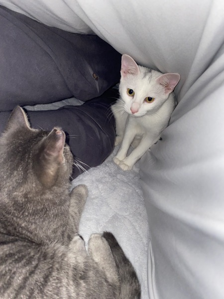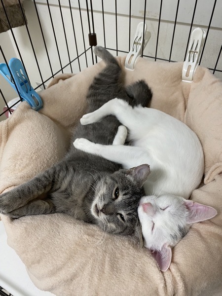 | 里親募集する理由 | 【経緯】 周りが車やトラックが行き交う公園から保護した子です。 9月下旬、2匹の白い子猫が突然現れました。2匹の内の1匹は目撃から数日後には姿を見せなくなり、残ったこの子を1週間後に緊急保護しました。 ずっと公園内を彷徨っており、お腹が空いていたようで怖がりながらも捕獲機に入ってくれました。 捕獲機に入っていても一度も威嚇はなく、なんと保護2日後にはお腹まで撫でさせてくれるスリゴロちゃんに大変身♪ 急に現れた。ものすごく人馴れをしている。明らかに捨てられてしまったのでしょう。。。 暖かい部屋で飼われていたのに、無責任な飼い主に危険な外にいきなり放り出されても、人間が大好きで甘えてくる姿に心が締め付けられてしまいました…。 現在、別の場所から保護した同じ位の子猫(悟空♂グレートラ)と一緒に仲良くに過ごしています。 1匹ずつでも構いませんが、2匹一緒に飼ってくださると嬉しいです。 子猫は複数飼いがオススメです♪(子猫同士で遊ぶので楽、子猫同士で社会性を学ぶ、留守番が寂しくない) しかし2匹は難しい場合もあると思いますので、1匹でのお問い合わせもお待ちしております。 ※もし2匹一緒にお家に迎えて頂ける場合、そちらの方を優先させて頂く場合がございます。 悟空【5ヶ月♂】珍しいグレートラ 甘えん坊♪ https://satoya-boshu.net/foster/detail.php?@DB_ID@=334636 |