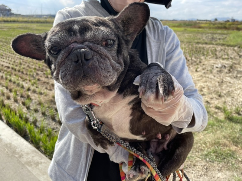 | 特徴(性格など) | 8キログラム。フレンチブルドッグの女の子です。 大人しく人懐っこい子です。 お目目くりくり、なんとも言えない愛くるしいお顔です。 マラセチア皮膚炎のため、週に数回、専用のシャンプーでのスキンケアが必要です。 ご理解いただき、引き続きケアして頂ける方、宜しくお願いします。 |