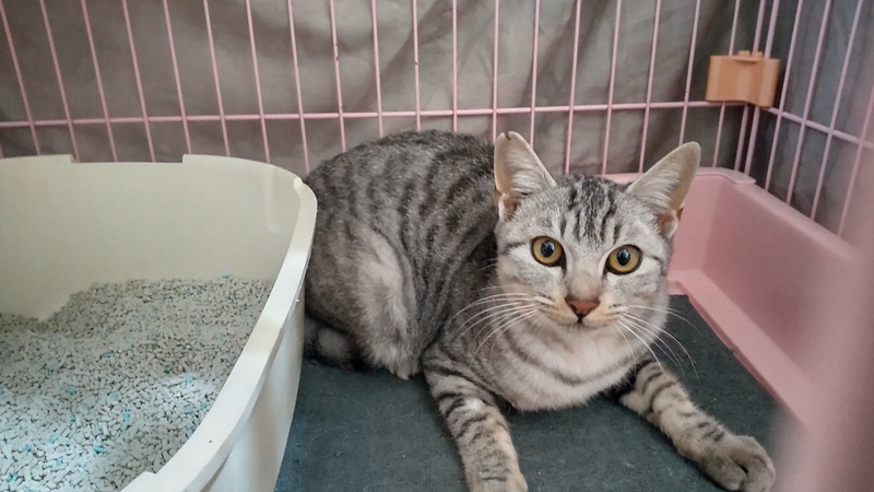 | 特徴(性格など) | 知らない場所に来て少し緊張していますがご飯をしっかり食べています まだシャーは出ることがありますが撫でられる気持ちよさが少しわかってきたように思います サバトラのとても綺麗な男の子です ノミダニ駆除済み 検便済み エイズ白血病検査陰性 |