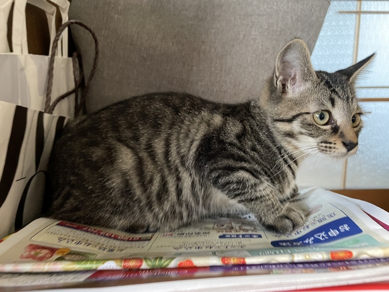 | 特徴(性格など) | 推定生後3ヶ月(2022年8月生まれ) キジトラの女の子です。 ぱっちりした目の美人で運動神経も抜群です!人間の様子を見てケージに入ったり甘えたりと頭が良い気がします。 人間が走ると一緒に走り出したり投げた小さなボールを取りに走るなど、犬のような一面もあります。 遊ぶのが好きで少しやんちゃな性格ですが、動物病院に行くと覚悟を決めたように静かになるなど、男気を感じるところもあります。 最近まで茶トラの男の子と暮らしていて、とても仲良しでした。先住猫がいらっしゃるご家庭でも相性によっては暮らすことができるかと思います。 |