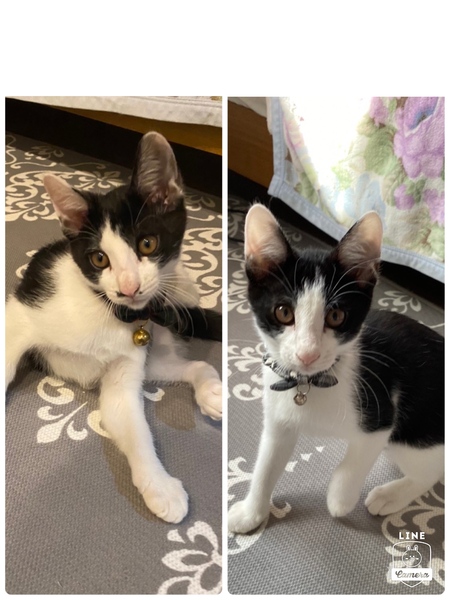 | 特徴(性格など) | 白黒ハチワレの男の子の兄弟です。 とても人懐こくて大の仲良しです。 猫は2匹で飼う方が猫同士にしか分からない楽しい遊び、お留守番も寂しくない、 2匹の戯れる姿を見ては本当に癒されます。 快食快便 トイレ完璧! |