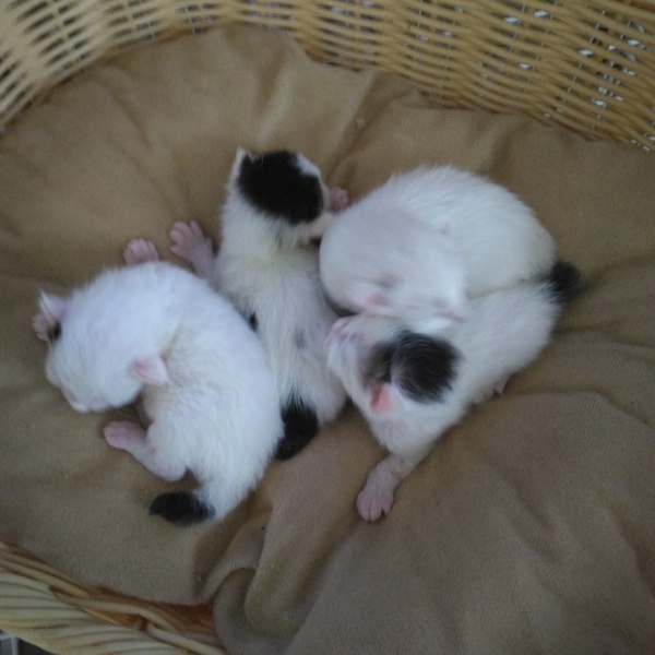 | 特徴(性格など) | 白黒ちゃんです まだ目が開いてないです しっぽ短いです |