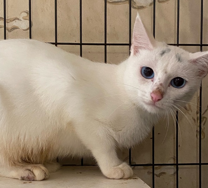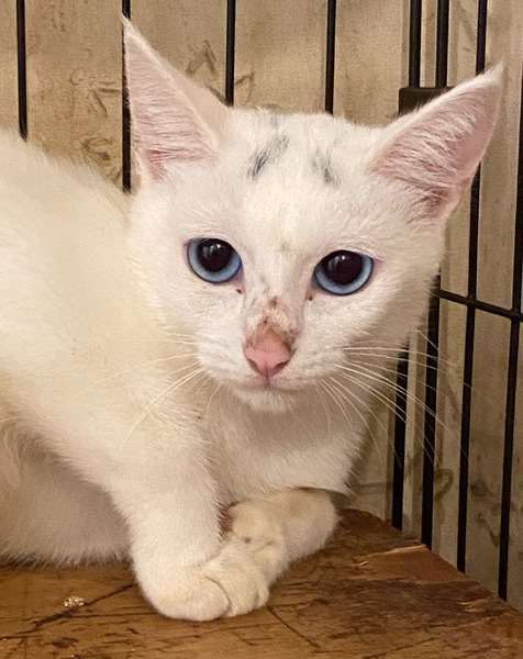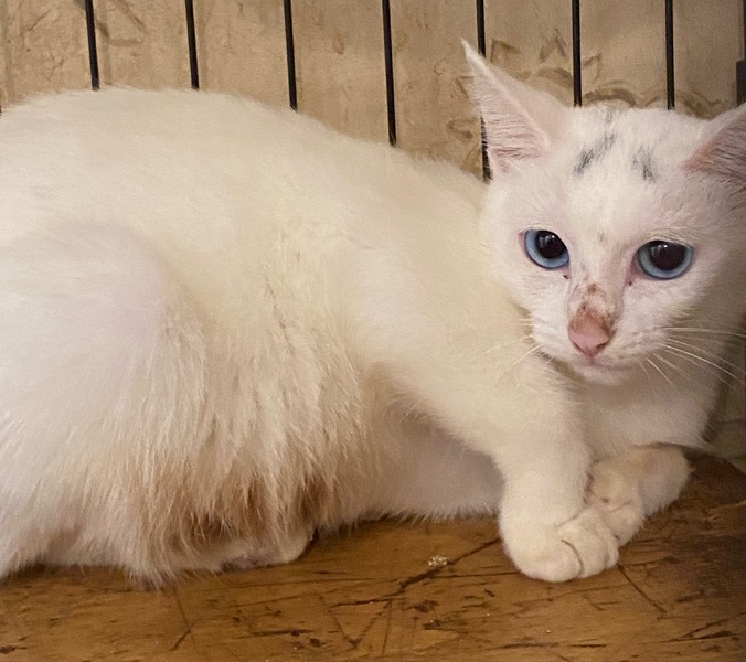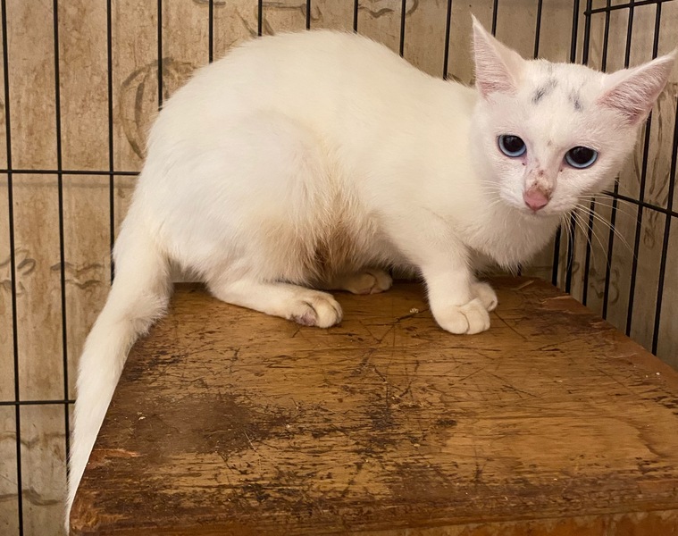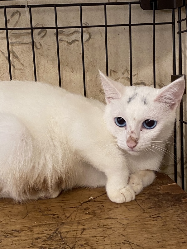 | 特徴(性格など) | ブルーアイの白猫の女の子です。 頭の部分に少しグレーが混じっています。 繊細な子ですので、まだ、警戒もしていますが、少しずつ馴れてきています。 |