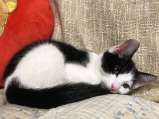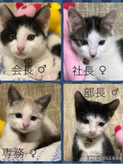 | 特徴(性格など) | ☆★☆★現在お見合い予定がございます☆★☆★ 仮名を『会長』と言います。 黒白の男の仔です。 センター収容猫です。 ミルクボランティアさんがミルクで育ててくれました。 会長は3兄妹で1番のビビリで、危険を感じると我れ先にと身を潜めます。 慣れるとどんどん積極的になります♡ 卒乳していますが、乳母の手をチュパチュパと吸ってくる甘えん坊なところが母性をくすぐられたまりません。 【医療処置情報】これから実施のも含まれます *健康チェック *3種混合ワクチン接種 (年1回定期的にしております。詳細はお見合い時にお知らせいたします) *ウイルス検査実施(FIV.FeLV共に陰性) *検便実施 *駆虫薬投与(レボリューション、ドロンタール) *マイクロチップ装着 *不妊・去勢手術 |