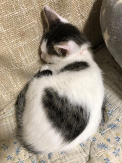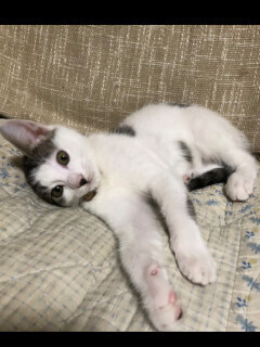 | 特徴(性格など) | ☆★☆★現在お見合い予定がございます☆★☆★ 仮名『社長』と言います。 白きじの女の仔です。 センター収容猫です。 ミルクボランティアさんがミルクで育ててくれました。 何でも興味津々で、何でも最初に手を出す積極的なお転婆さんです。 ニャーーニャーー♪とやってきては、膝の上でゴロゴロ♪と甘える甘え上手♡ 兄妹たちと仲良く過ごしています。 先住猫さんのいるお家や、兄妹ペアでのお迎え大歓迎です。 【医療処置情報】これから実施のも含まれます *健康チェック *3種混合ワクチン接種 (年1回定期的にしております。詳細はお見合い時にお知らせいたします) *ウイルス検査実施(FIV.FeLV共に陰性) *検便実施 *駆虫薬投与(レボリューション、ドロンタール) *マイクロチップ装着 *不妊・去勢手術 |