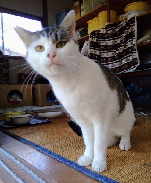 | 特徴(性格など) | 野良猫ちゃんを保護して避妊手術をしたので、まだ人馴れ訓練中です。 食欲旺盛、ちょっぴり怖がりですが、とっても元気な男の子です。 |