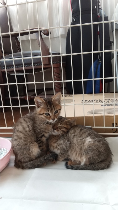 | 特徴(性格など) | 元気いっぱいです!ごはんモリモリ食べてます! 掃除のためにケージから出すと2匹で追いかけっこしてます。 とても人に懐いてます。飼われていた子が捨てられたようです。 トイレもちゃんと出来ますので、初めて猫を飼われる方でも問題ないと思います。 |