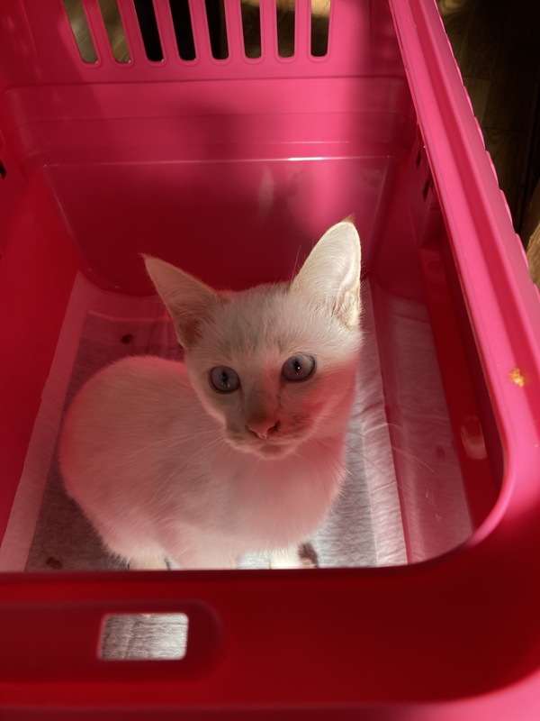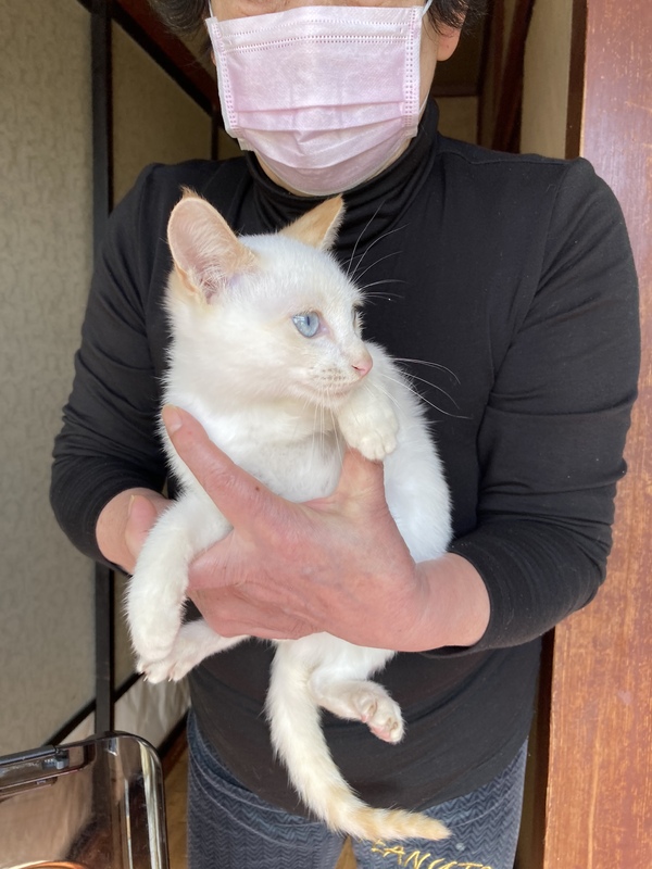 | 特徴(性格など) | ブルーアイで身体は白く耳としっぽはベージュです。 とても優しい子で自分より小さな子の面倒をみています。 人馴れしています。 現在1.4キロ |