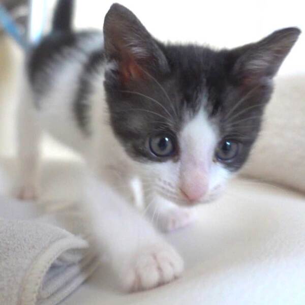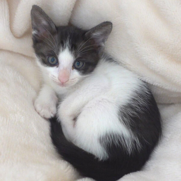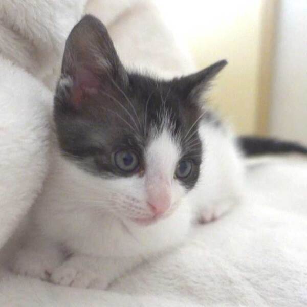 | 特徴(性格など) | すごく可愛らしいキジ白(顔はキジ白、動体は黒白)の子猫の女の子。 だけどコゲ茶白というのが、一番ピンとくる感じの色柄です。 ご見学は出来ますが、完全離乳してませんので、正式譲渡は11月19日以降くらいを予定しております。 生後2週間ほどからスタッフの家でミルクをやっていたので、人懐っこいです。 |