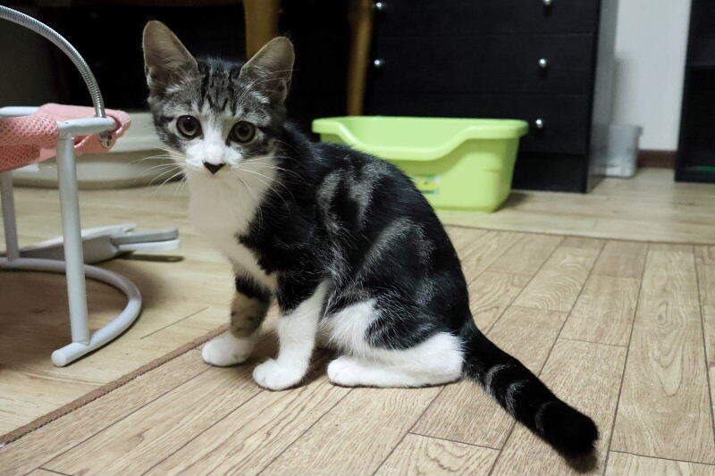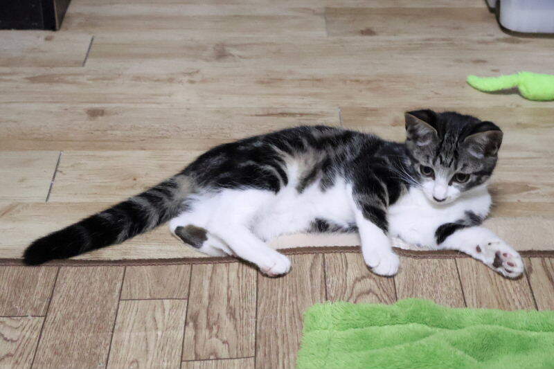 | 特徴(性格など) | アメショ柄・白 世話をする人はゴロゴロと甘えますが、知らない人は逃げます。 3 日で慣れると思います。 |