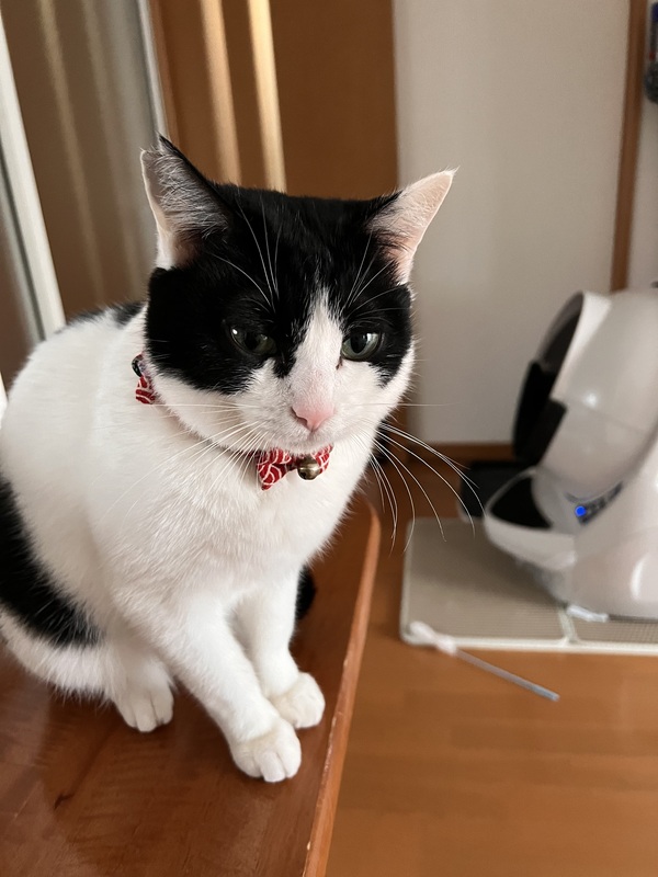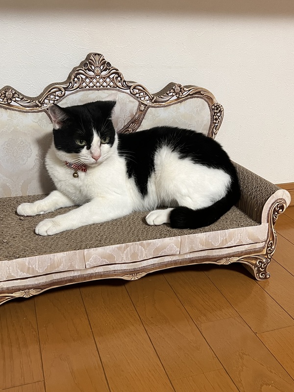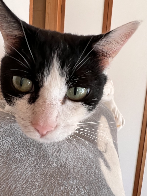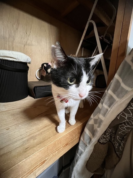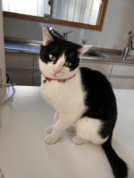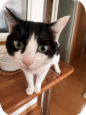 | 特徴(性格など) | 白黒モノトーン柄。ハチワレ。鍵しっぽ。 人は大好きで甘えん坊でスリスリガール。ベッドの上で横に寝ます。抱っこは短い時間でしたら可能です。 ただし、猫はあまり好きでは無く、近くに寄って来たりすると威嚇します。飛びかかったりの喧嘩にはなりませんが、唸り声をあげます。 |