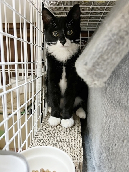 | 特徴(性格など) | 顔の模様は独特で、よくある白黒ハチワレではなく、ちょっとバットマン系? お洋服は、きれいなタキシードで、白の可愛い手袋をはめています^^ ノラのお母さんが厳しく躾けた為ご挨拶は「シャー」ですが(笑)、人馴れしています。 抱けばゴロゴロが止まりませんが、猫と遊ぶのが大好きなのと日頃ゲージインしてることもあり放すと呼びがききません。 それだけ、猫が大好きということでもあるのですが。 今は仮のお宅なのでこんな調子ですが、本当のおうちに迎えていただけたならば、この子の愛情は溢れ出し唯一無二の存在になると思います。 健康状態は良好です。 初期医療済ませています。 10/9の時点で、エイズ・白血病共に陰性です。 |