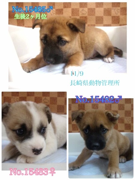 | 里親募集する理由 | 〜追記〜 あと1匹になりました! No.15482 左耳が折れてる男の子ฅ•ﻌ•ฅ ♡まだ生後2ヶ月位、野良ちゃんが生んだとっても可愛い雑種の子犬きょうだい達(男の子6匹と女の子3匹)です。 人と接した経験が無く、撫でられたり触れ合ったり人からの当たり前の愛情、優しさを知らないまま、お外で必死に生きてきました。 突然親犬と離れ離れになり連れて来られて収容され、どんなに寂しく心細いか。 一日も早く温かい家庭の中で過ごさせてあげたいです。 ⭐️県外、遠方の方でも譲渡の条件が合い、良縁に恵まれましたら里親になっていただけますのでどうぞ宜しくお願い致します! ※※※長くなりますが犬猫と里親様の幸せの為にも、募集内容を熟読し、必ずご家族とよく相談をされた上、ご家族全員の賛同を得られてからのお問い合わせ をお願い申し上げます※※※ ⭐️ 外飼いでは無く、室内飼育で家族の一員として迎えて下さる方、「引き渡し方法」のところにあります【①〜のアンケート】にご回答とNo.どの子をご希望か、と共に、お問い合わせを頂けますよう、お願い申し上げますm(_ _)m 長崎県壱岐市勝本町内、郷ノ浦町内にてそれぞれ壱岐保健所に保護され、現在は長崎県動物管理所へ移送されてきています。 無理もありませんが知らない場所、初めての環境でまだ怯えて怖がっています。 優しい職員さん方が大丈夫だよ、幸せになれます様にと毎日触れ合い、声掛けしながら一生懸命にお世話してくださっています(^^) まだ少し怖がっていますがだいぶ人馴れしてきて撫で撫でも抱っこも大丈夫、子犬らしくきょうだい同士じゃれ合って愛嬌たっぷり♪ 尻尾フリフリ甘えてくれるようになり、段々と馴れてきておっかなびっくりながらも手から食べてくれるようになった子も居れば、撫で撫でしてもひたすらジーっと大人しく固まって怯えていてケージから出て来ない子もいます。。 ただただ怖くてたまらない様子、必死に気配を消している感じで近寄ると逃げ回り、抱っこすると恐怖からお漏らししちゃう子も(^◇^;) この様な状態ですので、人や新しい環境に馴れるまではまだ暫く時間を要するかと思われます。 お散歩練習もまだ出来ません。 ⭐️栄養不良に不衛生な環境からの保護・収容で、ノミダニがついていました( ; ; )栄養状態や健康状態がいいとは言い切れません。体調も急変しやすいかと思われます(>_<) もしかしたら何か病気や障害が有るのか、無いのかも、分かりません。 今後体調の急変もあり得ることを念頭に置き、譲渡後は早急な病院受診が可能なご家庭を希望しておりますm(_ _)m 現在は1日に3回、ご寄付で送って頂いた栄養価の高い良質な仔犬用のドライフード(ネイティブドッグフードパピー)をミルクでふやかしたものとデビフ缶詰の子犬用離乳食を食べています。 まだまだ幼い為、頻回に離乳食を与える必要があります。 長時間のお留守番は出来ません。 寂しくて夜鳴きする子もいます。 今後の健康な成長の為に良質なフードを与える事が可能な方、育てる自信と覚悟のある方、出来れば飼育経験のある方が望ましいです♡ ※子犬は思っていた以上にお世話が大変だと言われる方が多く、排泄も頻回でどんどん大きくなっていき、甘噛み期もありますฅ•ﻌ•ฅ これから社会化期といわれる躾の時期、 社会性・協調性を身に着ける大事な時期になります。 まだしばらくお散歩デビューは出来ませんが今後成長していく中で、急な物音や知らない場所にビックリして怖がって、咄嗟に逃げよう、逃げようとする可能性も大いにあり得る事だと思いますし、その時の力、引きの強さも想定し、急な走り出しや高い塀や壁・柵の飛び越え・急な方向転換や首を振って後退りからの首輪抜け、胴輪抜けにはご用心です! 呼び戻しを教えなければもし逃がしてしまったらピューっと走って行ってしまうタイプかもしれません!(>_<) もし逃がしたらもう捕まえられない!とお考えくださいm(_ _)m ※繰り返しになりますがどんな子であっても、慣れてきても常に、脱走・逃走には充分な注意と最大限の配慮をお願いしております m(_ _)m 適切に制御し、躾や朝晩のお散歩、運動の時間をしっかり取ることの出来る、沢山優しく触れ合って頂ける方、先ずはじっくりと時間を費やし触れ合い、信頼関係を作っていく事の出来るご家庭を希望しております。 ♡人間が焦らずにゆっくり見守りながら、愛情を持って接ししっかりとお散歩にも連れ出して行けば、この子達ならきっと新しい家庭に馴染んでいける、優しい家族に囲まれて思い切り甘えて遊んでほしいと思います。 当分の間はかなり手がかかり大変かと思いますがまだ子犬ですし、広い心でドンとこい^_^と仰って頂ける方、愛くるしいこの子達を尻尾フリフリ♫ニコニコの笑顔にしてくださる方、いらっしゃいませんか? どうぞ宜しくお願い申し上げますm(_ _)m ⭐️必ず室内飼育で、譲渡後速やかに病院受診、健康診断、2回目3回目混合