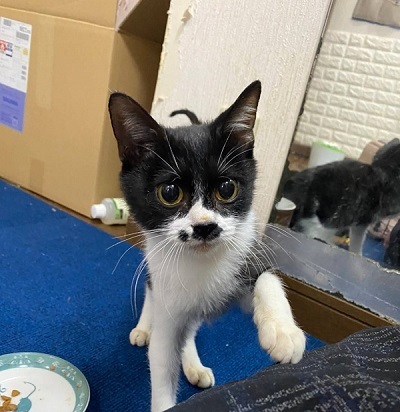 | 里親募集する理由 | ある会社のネズミ取りに引っ掛かっていました。 ベトベトの体でしたが、そんな姿でもゴロゴロと甘えん坊な声で甘えてきてくれました。 |