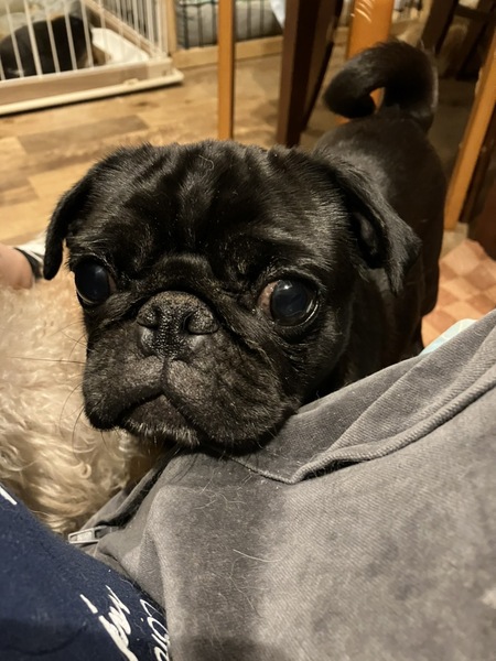 | 特徴(性格など) | 黒パグ 体重6.9キロ とっても人懐っこいつぐみちゃん。 はじめましての人にも、しっかりご挨拶できます。 おトイレはまだまだ勉強中。 肉球が潰れている為、ケアが少しだけ、必要になります。 ブヒブヒいいながら、後をついてくる姿がとても可愛いです。 |