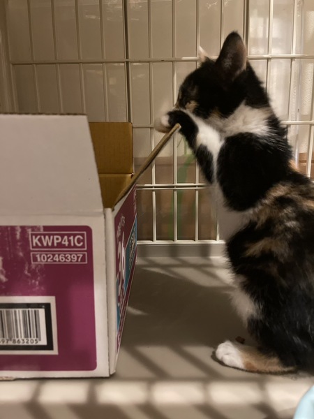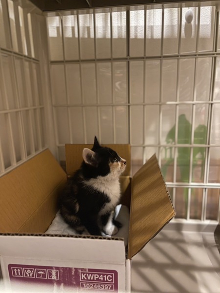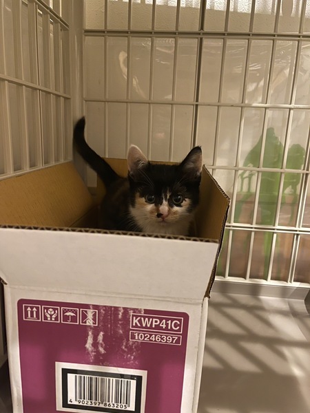 | 特徴(性格など) | とても人懐っこい元気なかわいい女の子です。 顔は黒が多めな三毛猫です。 保護当初は、風邪をひいていたのか下痢が続いていましたが 現在は元気いっぱいです! |