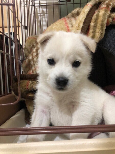 | 特徴(性格など) | 【仮名】マッケンユー 【生年月日】2022/10/6 【種類】MIX 【成犬時サイズ】中型犬(13~15kg位まで)になると思います。 【毛色】ホワイト 【性別】オス 【去勢】未(適正時期に必ずお願いします) 【混合ワクチン】12/6過ぎに1回目接種予定。 【駆虫】済 【健康状態】食欲もあり元気です 【単身・高齢者】応募不可 【性格】人にくっつくのが好き。 人が来ると、物凄いダッシュで駆け寄ってきます。 優しい性格。 そっと、じっと座って観察するのが好き。 ご飯もゆっくり食べる。 自己主張少なめ。 フリー時トイレ成功率60%。トイレトレーニング中です。 |