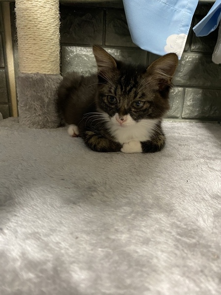 | 特徴(性格など) | 白キジで半長毛。とっても可愛いソックスとタキシードです。キジの色は黒っぽいです。 猫も人も大好きで、甘えたのアイビーくん。生後2ヶ月過ぎの男の子。食いしん坊でやんちゃです! |