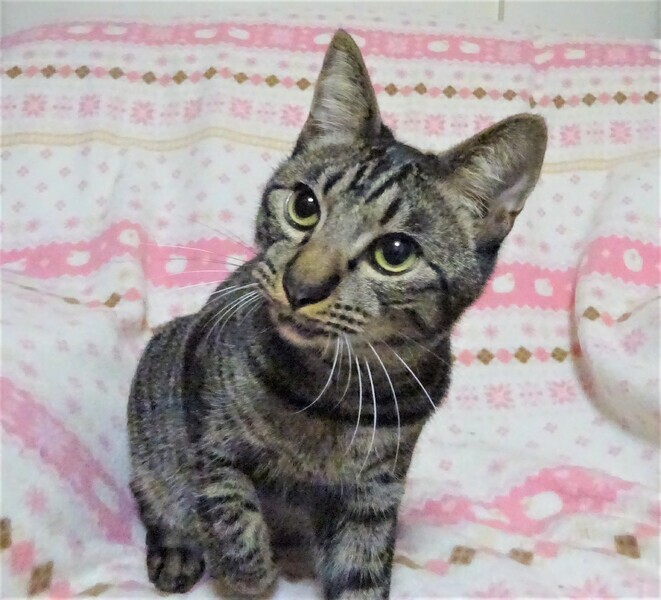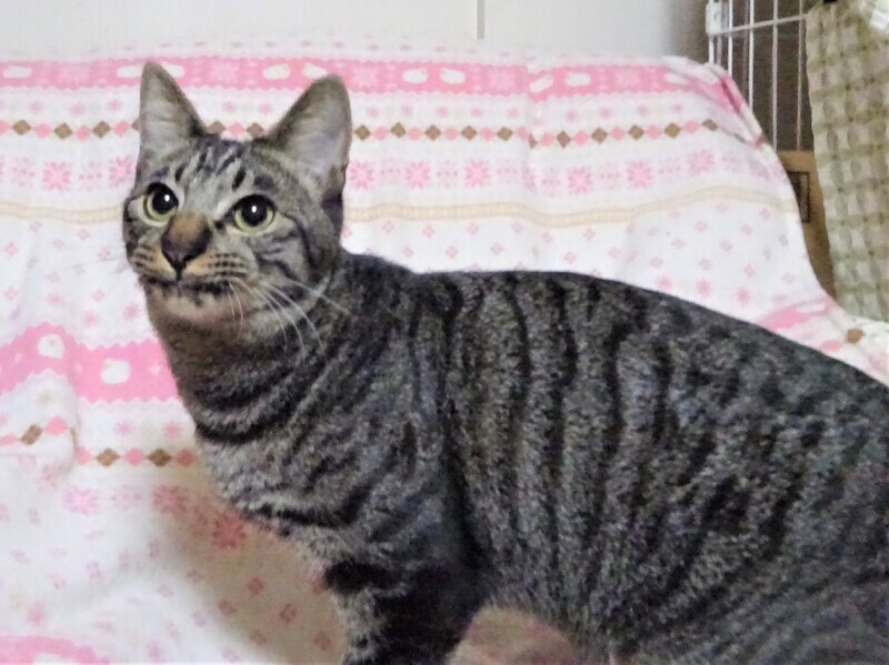 | 特徴(性格など) | 仮名: 京介くん(オス) 毛色: サバトラ、尻尾長い 性格: ケージから出ると真っ先に膝の上に来て甘えます。 スリスリゴロゴロ、抱きついたり、仰向けでデレーとしたり、一通り甘えてから活動を始めます。 嫌なところを触ったり(手術をしたため、下半身)、嫌な事(爪切り、目薬など)をすると、たまに、う~と怒ったりしますが、攻撃性はありません。 甘えているときと怒る時のギャップが少しあります。近くにいる子にプロレスを仕掛けたり、活発に遊びます。 生後2カ月頃に尿道がつまる病気になり、手術をしましたので、陰茎が出ていますが、目立ちません。 健康になったので、問題はないです。 あまり見る場所でもないので、気にならないと思います。 大人猫とも子猫とも遊べますので、先住猫がいるお家でも大丈夫です。ただ甘える時と怒るときのギャップがあるので、猫飼い初心者の方だと驚くと思いますので、飼育経験者の方のほうが良いかなと思います。 検便済 駆虫済 ノミ取り済 ワクチン済 去勢手術済 猫エイズ・白血病ウィルス検査はともに陰性 |