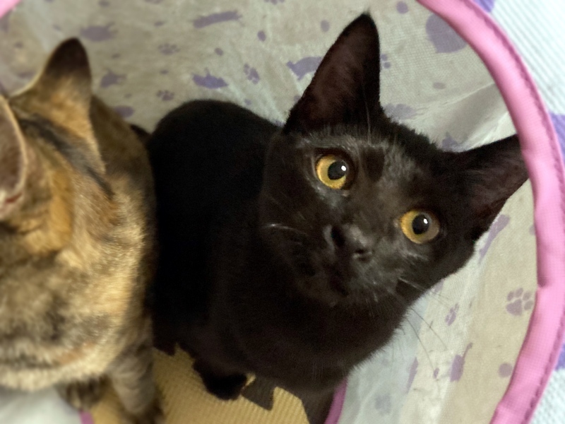 | 特徴(性格など) | 【仮名】ひとみ 【生年月日】推定2022/8上旬生まれ 【種類】MIX 【毛色】ブラック 【性別】メス 【避妊】未 【ワクチン】2回接種済み 【駆虫】済 【健康状態】良好 【性格】人工哺育で育ったためとても甘えん坊ではじめて会った瞬間にゴロゴロ言ってくれます^ ^ 寂しくなると寄ってきてくっついて寝てくれます♪寝ると周りで何かしてても起きずのびのびしてます! 一緒に預かり中のはるかと走り回って過ごしてます! 興味津々でなんでもオモチャになります。遊ぶの大好きです! 【兄弟】はるか♀、ゆたか♂、つぶら♀、ひかる♂ |