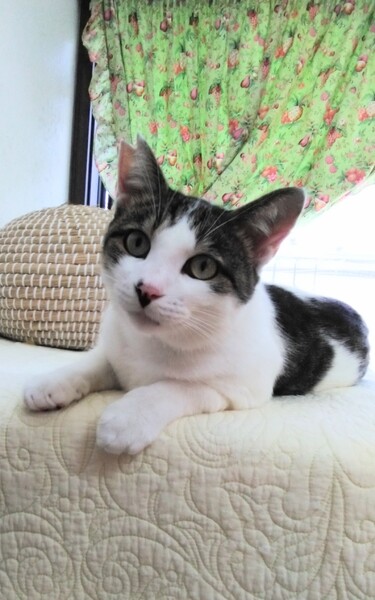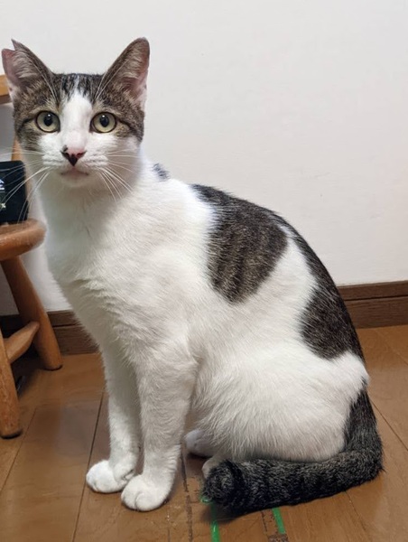| 特徴(性格など) | ハチワレのキジシロです。 天真爛漫な性格です。 ちょっと間抜けなところが、すごく可愛いです。 一緒に遊んでくれる、優しい里親さんを探しています。 |