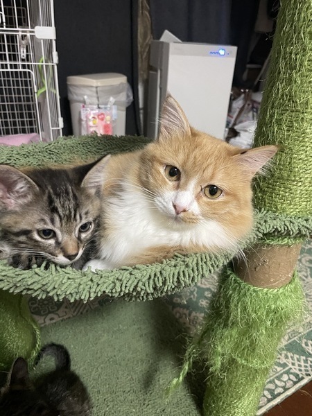 | 特徴(性格など) | ◆ならわ 人馴れ訓練中、猫には優しい茶白長毛女子 ○千葉県内にて保護されました。 ○推定4歳くらい(2024年11月中旬時点)の茶白長毛の女の子です。 ○長毛のため、こまめにブラッシングのお手入れをしてあげるのが理想ですが、現在はまだ触れないためブラッシングもできていません。幸い毛玉は出来にくいようです。 ○6月に出産して、5匹の子供を立派に育てたお母さんです。 ○ナデナデできませんが、近くで遊んだりご飯食べたりちゅーるは手から舐めてくれます。 ○人馴れはしていませんが、猫にはとっても優しい女の子です。 ○食欲旺盛で子猫のように良く遊びます。 ★ワクチン済み、不妊手術済み。 ★猫エイズ、猫白血病ともに陰性。 ☆単身のかたはご相談ください。 ○YouTubeにも動画をあげています。こちらもご覧下さい。 「ならわ」 https://youtube.com/shorts/UFQoE9W8qc0 「ならわ」その2 https://youtube.com/shorts/KV7SzDmYy-Q ○HGA48犬猫ニュースチャンネルにて、オンライン譲渡会を開催しました。ならわちゃんを紹介しておりますので、ぜひこちらもご覧下さい(開始45分頃〜)。 https://www.youtube.com/live/YJDk8zS82Hk?si=68rjEYlxMcebzCOK ★★お見合いを設定することも可能です。まずはお申込みください★★ |