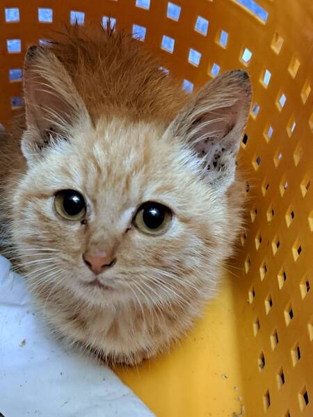 | 里親募集する理由 | 隣人から畑で子猫が震えているとレスキュー依頼がありレスキューされました。 寒さが厳しくなる前に保護できてよかったです。 |