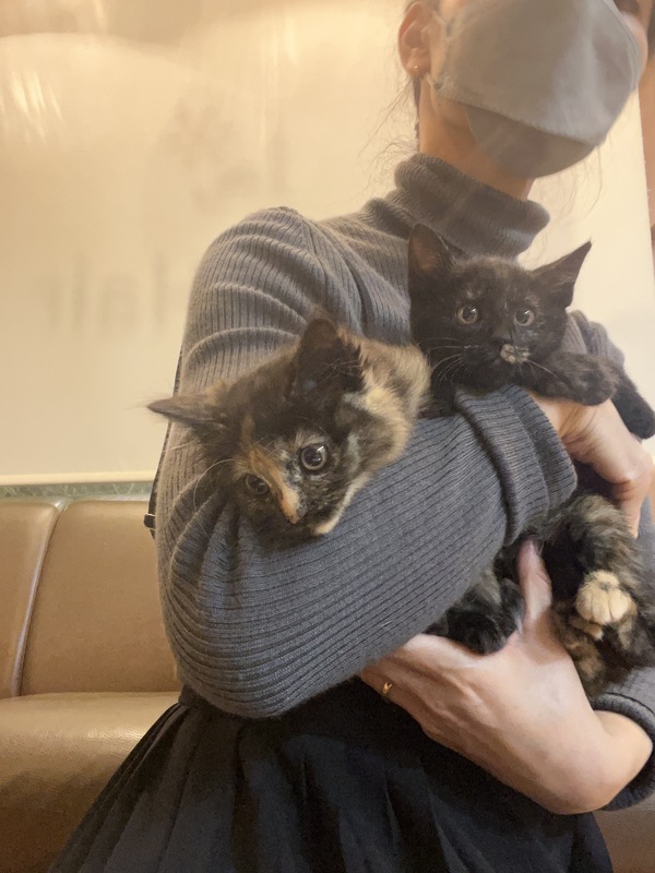 | 特徴(性格など) | ー性格・特徴ー ○さび猫のセミロング 女の子 2ヶ月 現在体重600g しっぽは真っ直ぐ 毛並みはふわふわ柔らかな 気品漂う綺麗な毛です。 性格は穏やかで女の子らしい子猫です。 ○黒さび猫 女の子 体重現在600g お目目まんまる 身体はとても綺麗な細かいさび柄です。 大人しくビビリさんです。 兄妹のふあふあさび猫ちゃんと いつも仲良しでひっついています♪ 保護の際も 一つの捕獲器に二匹で入っていました。 ペアの方大歓迎♪ もちろん一匹でもご相談ください! お気軽に会いにいらしてください♪ ◆健康状態 元気です。 カリカリとウエットフードを食べています。 おトイレもできます。 ○ノミ駆虫済(ブロードライン) ○ウイルス検査 陰性 ○検便検査問題なし ○ワクチンは1キロになってから接種になります |