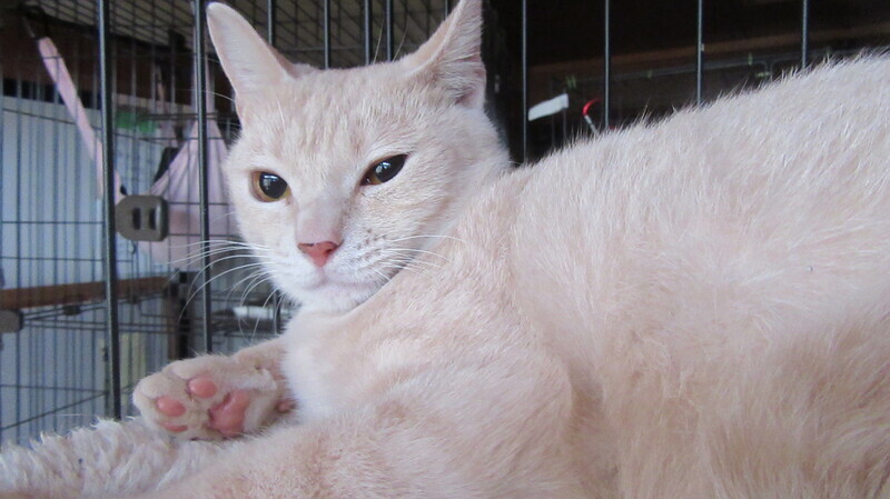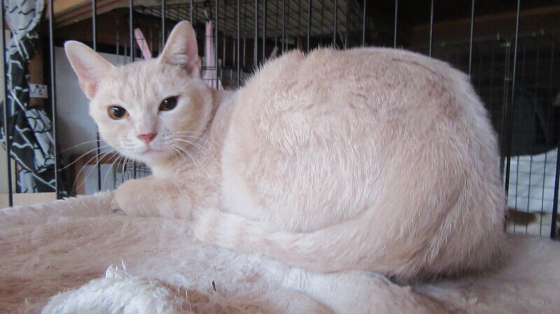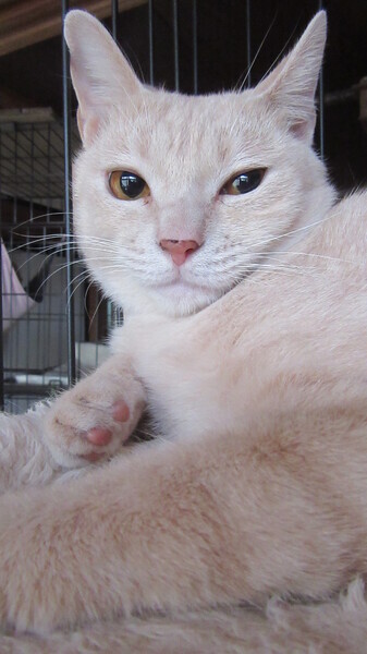 | 特徴(性格など) | 毛色はきれいなクリーム色です。 ゴールドの目のイケメン君です。 少々こわがりですが、人慣れは出来ているのでさわるのはOKです。 |