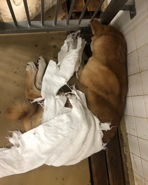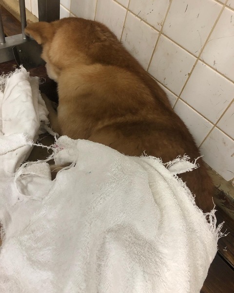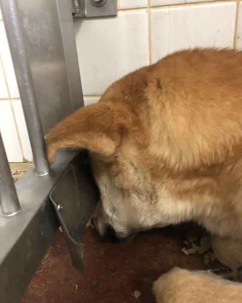 | 特徴(性格など) | サイズは中型犬の大きい方で体重は20キロくらいでしょうか (個人の見解) 人間が怖くてずっと顔を埋めそのままの体制で脱糞していました( ᵒ̴̶̷̥́ㅿᵒ̴̶̷̣̥̀ ) オヤツを口元に持って行っても動くことはありませんでした ただただ恐怖で固まっています |