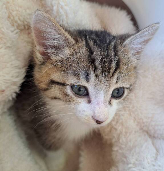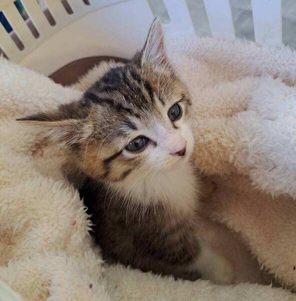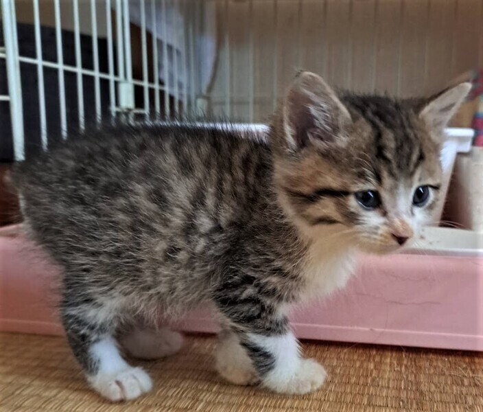 | 特徴(性格など) | 仮名: モコくん(オス) 毛色: キジ白 性格: 保護時に右目に炎症がありました。 治っていますが、時々涙目になることがあります。 人が大好きで、犬にも物怖じせずに、走り回ります。 先住猫にシャーされても、どこふく風邪のマイペース男子です。 まだ小さいので、留守番時間が少なく見守りが出来る環境を希望します。 一緒に遊べる先住猫さんがいても大丈夫だと思います。 検便済 駆虫済 ノミ取り済 ワクチン済 猫エイズ・白血病ウィルス検査はともに陰性 |