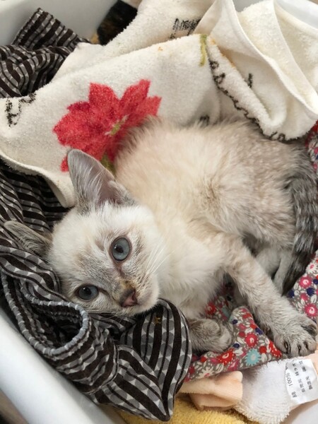 | 特徴(性格など) | 肺炎を起こしていましたが、預かりさんのおかで元気になりました。 今では元気になり走っています! 甘えたさんで人が大好きです(^^) ・ノミダニ回虫駆除済み ・エイズ(−)白血病(−) ・3種混合ワクチン接種予定 |