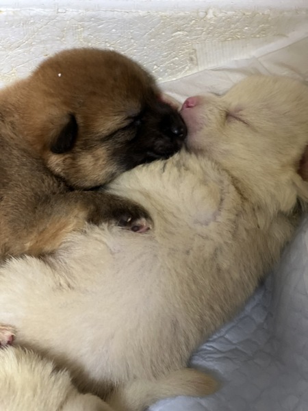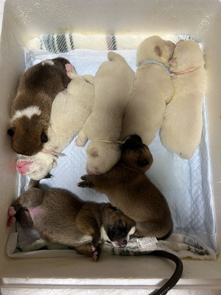 | 特徴(性格など) | まだ小さすぎるためわかりませんが、ミルクから人の手で育てられているため、人馴れは全く問題ないと思います。 白い子たちはアルビノの可能性大です。 4人の獣医さんに伺ったところ、アルビノでも他の犬と大差ないこと伺っています。 オス4匹メス3匹になります。 |