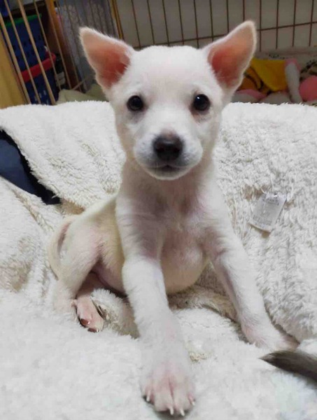 | 特徴(性格など) | 2022年9月下旬生まれの子犬「大福」です。(11月下旬2キロ弱) 明るく活発で抱っこが大好きな甘ったれさん、 よく食べてよく寝て健康優良児、すくすく成長中です。 遊んでいたかと思うとコロッと寝てしまい正にザ・子犬です。 先住犬(18kg)に興味があり遊んでほしくてプレイバウをする姿から 他犬に対して友好的な性格に思えます。 トイレトレーニングは成功率7−8割でまだ練習中ですが 見当外れな場所ではしませんのできちんとシートを認識しています。 食事は現在1日4回、便の様子を見ながら3回に減らす予定です。 車酔いは今のところ見られません。 まだ幼いので基本的なしつけは全てこれからで オスワリやマテができるように練習が必要です。 まだ子犬なのでお留守番がなく(少なく)て、 ゆっくりゆったりと成長を見守って愛情を注いで下さるご家族に 迎えて頂きたいと希望しております。 ●預かりブログ: https://ameblo.jp/poalo1102/entrylist.html |