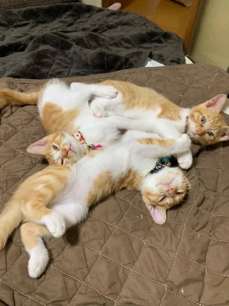 | 特徴(性格など) | アメショ柄っぽいチャシロの兄弟です。 2匹とも飼い猫で幸運の鍵尻尾ちゃんです。 とても可愛い兄弟です。 |