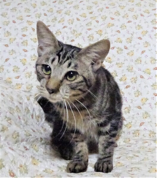 | 特徴(性格など) | 仮名:健介くん(オス) 毛色:アメショー柄の渦巻き模様、尻尾は折れ曲がり。 性格:ミルク育ちですので、人馴れしています。 自分からベタベタスリスリしてきます。ケージから出ると真っ先に人の所に行き甘えます。病院ではエリザベスカラーをつける時とかネットに入れる時に大騒ぎしたそうですが、家に帰ると、(嫌な事があったんだよ~)とベタベタ甘えて来ました。 嫌な事は嫌と主張出来ます。 人好きな良い子です。 大人猫とも子猫ともトラブルなく遊べるようですから、先住猫ちゃんがいるお家でも大丈夫と思います。 小さい頃の猫風邪の影響で、目が酷く、一時は失明するかと思いましたが、助かって治りました。 一部、結膜が癒着し見ずらいようでしたので、去勢手術時に目の手術もすることにして待っていました。手術をしてかなり良くなって、すんなりと見えるようになりましたが、その時の風邪の後遺症で、時々、涙目になったり鼻水がでたりすると思います。 それが大人になっても続くのか、わかっていません。 風邪ではないので、元気ですし、臭いもわかるようでご飯もよく食べます。 他猫とはうまく付き合えていますので、優しい先住猫がいるお家でも大丈夫と思います。 検便済 駆虫済 ノミ取り済 ワクチン済 去勢手術済 猫エイズ・白血病ウィルス検査はともに陰性 |