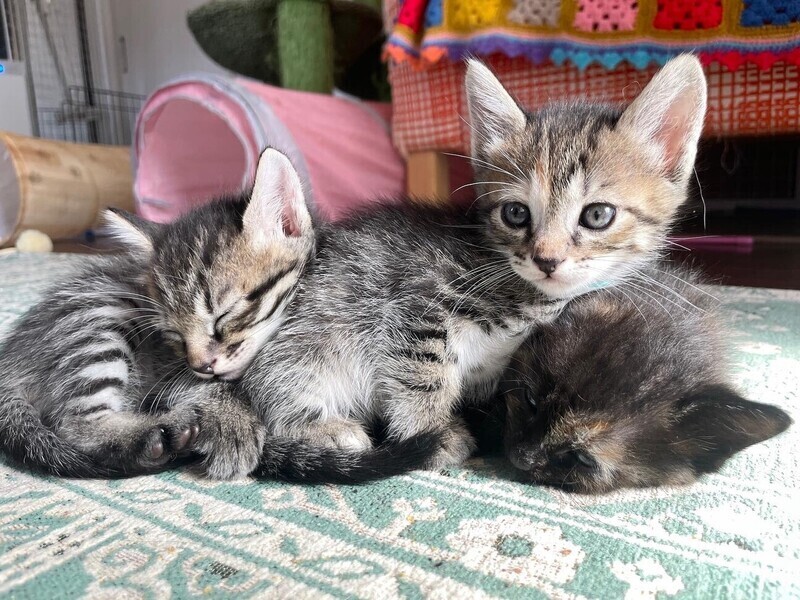 | 特徴(性格など) | ◆いそべくん 兄妹と仲良し、元気いっぱい ●月齢の小さな子猫は、以下の条件についてご了承の上で応募をご検討下さい。 ◆お留守番の少ないご家族を希望します。 ◆2匹でお迎えくださるご家族を優先いたします。 ◆小さなお子様のいるご家庭は状況によりお断りする場合がございます。 ◆高齢者のみのご家族からの子猫のお申し込みはお受けしていません。 ○群馬県内で、母猫と5匹の兄妹とともに保護しました。 ○生後2か月ぐらい(2022年11月下旬時点)の、キジトラの男の子です。 〇子猫らしいつぶらな瞳がたまりません。 ○良く遊びよく食べる元気男子ですが、今でも母さん猫のオッパイ飲んでいたりします。 〇仲良しの兄妹と、2匹での譲渡を希望します。 〇同じく里親様募集中のバラギ、いかほ、はるなことは兄妹です。 ○元気にすくすく育っています。 ☆ワクチン1回接種済み。 ☆猫エイズ、猫白血病ともに陰性。 ☆不妊手術は、成長と体調を見て実施予定です。 ○YouTubeにも動画をあげています。こちらもご覧下さい。 「バラギ」「いかほ」「いそべ」その1 https://youtube.com/shorts/uukQXxh8Y0U 「バラギ」「いかほ」「いそべ」その2 https://youtube.com/shorts/59QrVKTVN3Q 「バラギ」「いかほ」「いそべ」その3 https://youtu.be/-ssgDheC1Zw ○11/27(日)開催の譲渡会に参加予定! 下の要項をお読みいただき、ぜひ会いに来てください♪ ☆★☆★☆★☆★☆★☆★☆★☆★☆★☆★☆ 11月27日(日)荏田にて譲渡会開催! ◎場所・・「島忠 荏田店」 神奈川県横浜市青葉区荏田西1ー3ー14 田園都市線「江田」駅より徒歩約7分 246号線江田駅交差点そば ◎日程・・11月27日(日)(雨天決行) ◎時間・・13時から16時 【15時30分受付終了】 (会場に利用可能な無料駐車場がございます。そちらをご利用くださいませ。) 今回はコロナ対策のため、制限を設けての開催となります。 *3密対策のため、当日12時30分より整理券を配布いたします。 *各回15分 *各回先着3組様 *参加の際は、マスクの着用、アルコール消毒のご協力をお願いいたします。 *当日は検温の上、体温が37度以上の方はご参加いただけません。 *混雑状況により、中止させていただく場合がございます。 ※参加予定の犬猫は体調により参加できない場合があります。ご了承ください。 ☆★☆★☆★☆★☆★☆★☆★☆★☆★☆★☆ |