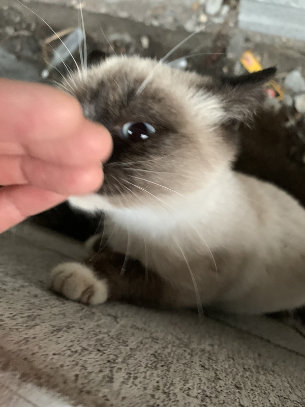 | 特徴(性格など) | ブルーアイのシャム猫ちゃんです。 スリスリふみふみが止まらない甘えん坊です。 私が見えると一目散に走り寄ってきて足元にスリスリしてきます。一歩歩くたびその足にスリスリしてくるので、踏みそうになってこわいくらいです! |