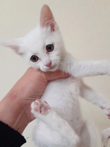 | 特徴(性格など) | ✳︎特徴 白猫さんは、大抵どこかに黒い毛が少しだけ生えていることが多いのですが、全体的に真っ白です。 白猫さん独特の儚いような気品があるような独特の印象があります。 尻尾は長くてほぼ真っ直ぐです。 瞳の色はゴールドです。ある意味よかったです。オッドアイの猫さんは聴覚異常の症状が出やすくなってしまいますので、このコたちは両眼が同じ色の瞳でラッキーでした! ✳︎性格 かなり幼齢で保護をされました。やや衰弱気味だったため処置別看護を受けたあと、授乳専門のボランティアさんの元で育ちました。ニンゲンがママの替りとなって育てていますので、警戒心もなくかなり懐っこいです。 お写真ではこぼれ落ちそうな瞳が何とも言えず守ってあげたい感満載ですが、さすが男の子!よく遊び、よく甘えて、元気いっぱいです(笑) ちょうど今の時期から4ヶ月くらいまでの間は、子猫さんの社会性が育つ時期になります。取っ組み合いの喧嘩をしながら、甘噛みを覚えたり、追いかけっこしながら、動体視力を養っていきます。 出来れば、2頭一緒に迎えてくださるお宅か、一緒に遊べる先住猫さんのいるお宅の方を優先させていただきたいと考えております。 ご理解くださいますよう、よろしくお願いいたします。 |
