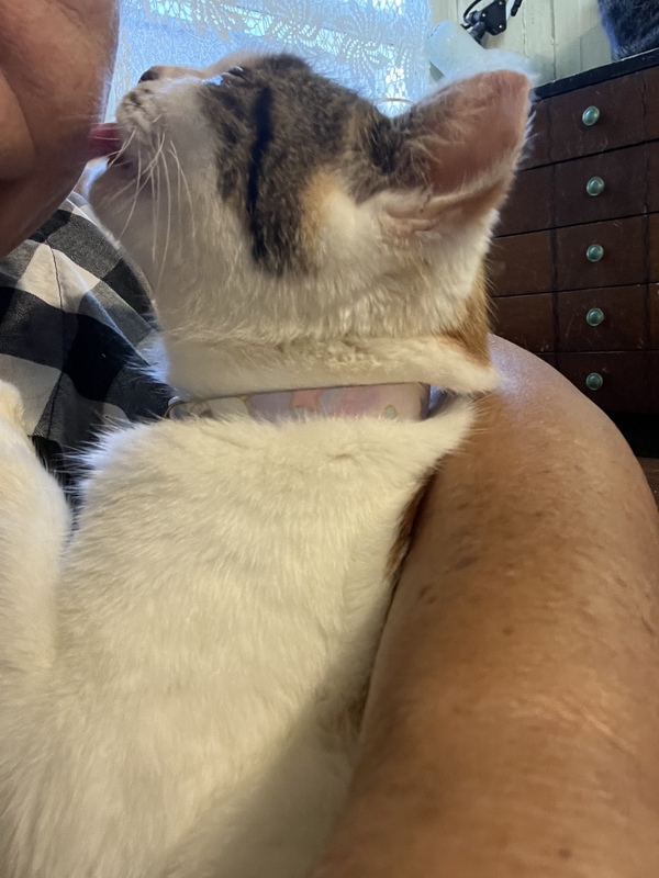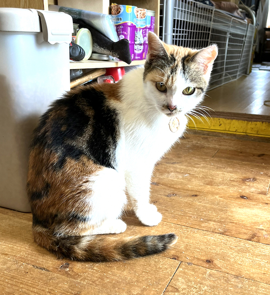 | 特徴(性格など) | 白多めの三毛。優しい顔つき。 猫より人が好き。 犬も大丈夫。 スリスリちゃんです。お返事します。仮の名前はみなみちゃん。 |