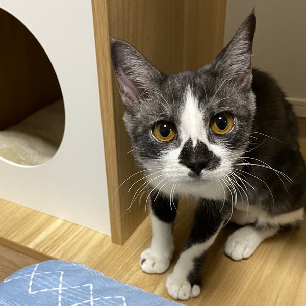 | 特徴(性格など) | 保護当初は威嚇が凄かったですが、慣れて来て触らせてくれるようになり抱っこもさせてくれるようになりました 最近は布団がお気に入りみたいで潜って一緒に寝てくれます 怖がりさんな所がある為小さいお子さんがいるご家庭の方はごめんなさい シャムちゃんととっても仲良しなので2匹で家族になってくれると嬉しいです おもちゃで遊ぶのがとっても大好き食いしん坊お目目がくりくりとっても可愛い女の子です ◆健康状態 病院にてノミダニ回虫駆除済み 避妊手術済み 良好です |