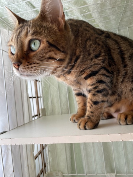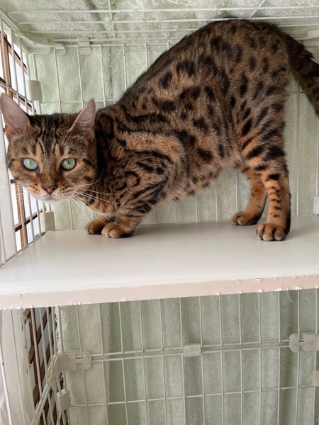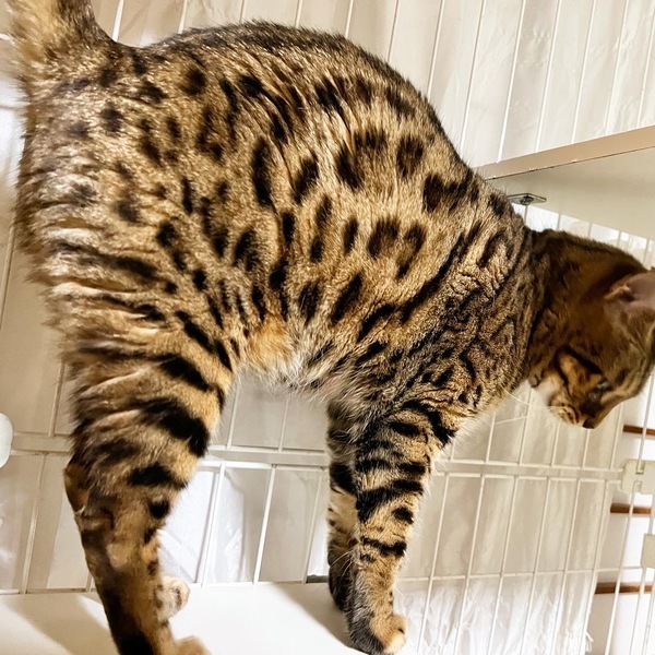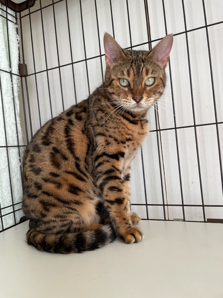 | 特徴(性格など) | 猫種 ベンガル 性別 女の子 年齢 4歳 柄 ブラウンスポティッドタビー パウプリントロゼット 性格は温厚そうで、ゴロスリしてくれます。 ご飯もよく食べ元気です。 |