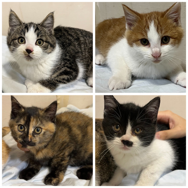| 特徴(性格など) | 地域猫が子猫を連れて我が家の庭に来ました。 しばらく様子を見ていましたが、 寒くなる時期なので家の中に保護しました。 (飼い主いません) 現在は母猫も一緒です。 茶トラ、キジ白:おそらくオス 白黒、サビ:おそらくメス 推定2ヶ月齢 ※保護したばかりで人慣れしていません |