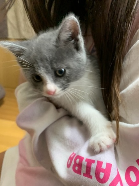 | 特徴(性格など) | 毛の色がグレーで、モフモフの女の子! 姉妹で良くくっついて戯れてます! 性格も優しい子で、引っ掻いたり噛んだりすることは少ないです!人や子供にも慣れてます!食いしん坊な所もあって可愛いです! |