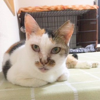 | 特徴(性格など) | とても大人しい性格で、名前を呼ぶと可愛らしい声でお返事をしてくれます。 スリスリゴロゴロの甘えん坊さんです。 猫とも人とも相性良好。家庭猫として迎えやすい子です。 エイズキャリアになりますが、現在未発症でよく食べとても元気な子です。 できればお家で一緒に過ごす時間の長い方にお願いしたいと考えています。 猫エイズ(+) 白血病 (-) 猫エイズ陽性のりんご猫です。 |
