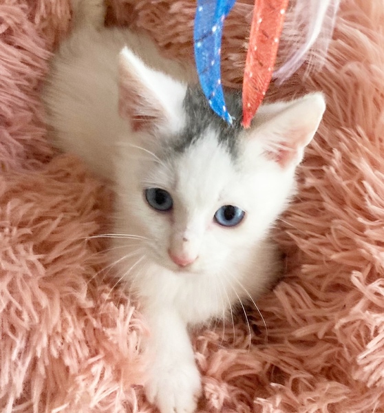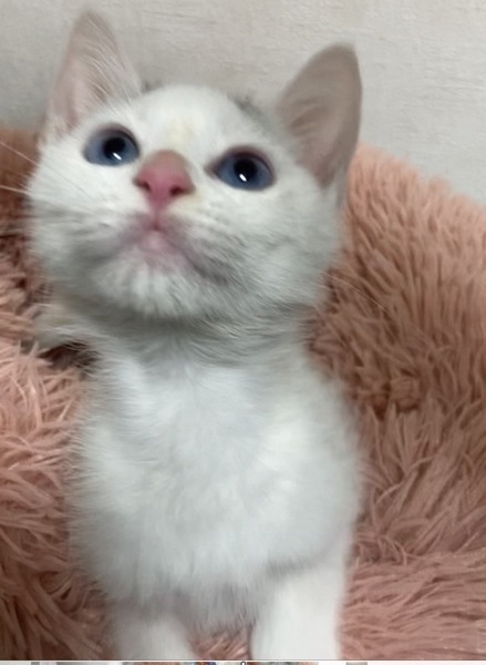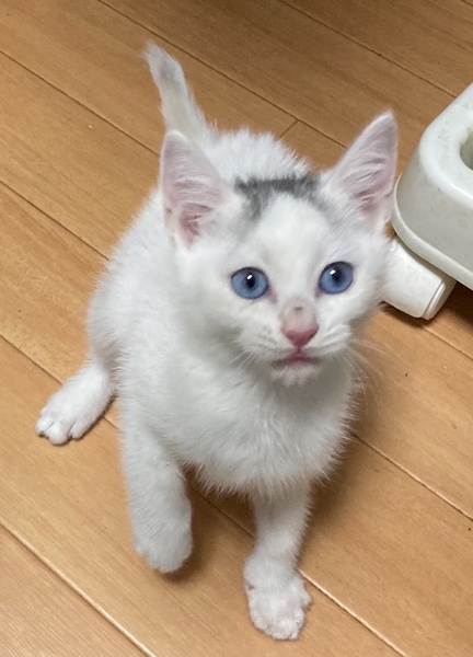 | 特徴(性格など) | ✳︎特徴 頭に黒っぽい毛が生えていて、他は全て真っ白です。 白い猫の頭の部分に模様が入っていると「キトゥン・キャップ」と呼ばれ、子猫のときにだけ見られます。1才になる頃に自然と消えていくそうなのです。成長していくにつれてどうなっていくのか、変化を楽しんでいただけたらと思います。 瞳はちょっと珍しい青い瞳です。キトンブルーの時期はすでに過ぎているので、このままの色が残る可能性が高いと思います。成長に応じて瞳の色は変わってくる猫さんもおりますので、あらかじめご了承下さい。 ちょっとモフっと感があるので、これから冬が楽しみです。 ✳︎性格 かなり幼齢で保護をされました。保護当時は、栄養不足で衰弱気味だったため処置別看護を受けたあと、授乳専門のボランティアさんの元で育ちました。ニンゲンがママの替りとなって育てていますので、警戒心もなくかなり懐っこいです。 そして甘えん坊で寂しんぼさんです。お世話になったボランティアさんにすごく可愛がってもらって甘やかしてもらったんだなと(笑) お写真ではこぼれ落ちそうな瞳が何とも言えず守ってあげたい感満載ですが、さすが男の子!よく遊ぶ、よく甘えると元気いっぱいです。 今の時期は、子猫さんの社会性が育つ大事な時期になります。 子猫さん同士で取っ組み合いの喧嘩をしながら、甘噛みを覚えたり追いかけっこしながら、動体視力を養っていきます。 現在、保護主宅で大人猫さんや他の子猫さん達とも一緒に仲良く過ごしています。 甘えん坊の寂しんぼさんなので、2頭同時に譲受けてくださるお宅や、一緒に遊べる先住猫さんがいらっしゃるお宅、お留守番が短いお宅を優先させて頂きたいと考えております。 |