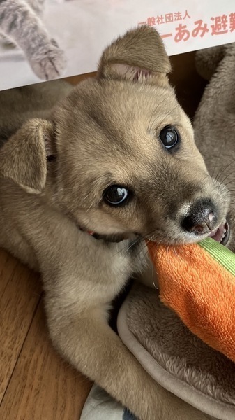 | 特徴(性格など) | ケットちゃん お膝大好き♪可愛いすぎる女の子。 ●以下の条件を満たすご家庭を希望します。ご了承の上で応募をご検討下さい。 ◆日中のお世話やお散歩が高齢者でないご家庭 ◆お留守番時間が少なめなご家庭 ◆体重15~20キロ、体長60cm程度、体高45cm程度に成長する中型犬の飼育が可能なご家庭 ◆逸走防止対策が出来るかた。万が一逸走した場合あらゆる手段を講じて捜索出来る方 〇香川県内で兄妹で保護されました。 〇人懐っこい可愛すぎる甘えん坊の女の子です。 〇すくすく成長中で、現在の体重は4.2kg(2022年11月現在)です。 〇お膝の上に乗って撫でてもらうのが大好きです。 〇人も犬も大好きです。 〇おてんばで元気に走り回って遊びます!! 〇慎重ではじめはおっかなびっくりなところもありますが、すぐに慣れて活発に♪ 〇「ピロー」は一緒に保護された兄妹です。 〇兄弟ともに元気にすくすく育っています。 〇トイレも室内シートで上手にできるようになりました!! 〇愛情持って終生大切にしてくださるご家族さまをお待ちしております。 ○YouTubeにも動画をあげています。こちらもご覧下さい。 ピロー&ケット ①https://youtube.com/shorts/2zc6eVdvb_g ②https://youtu.be/kZ47atKmQug ③https://youtu.be/ac1B5a ④https://youtu.be/Vc5b3Jy9Bfs ○12/18(日)開催の譲渡会に参加予定! 下の要項をお読みいただき、ぜひ会いに来てください♪ ☆★☆★☆★☆★☆★☆★☆★☆★☆★☆★☆★☆★☆★☆★☆★☆★☆★☆★☆ ~12月18日(日)市ヶ尾にて譲渡会開催!~ ◎場所・・「東急ドエル市ヶ尾プラーザビル2階集会場」 神奈川県横浜市青葉区市ヶ尾町1154-2 田園都市線「市ヶ尾」駅西口より徒歩約2分 ◎日程・・12月18日(日)(雨天決行) ◎時間・・13時から16時(受付は15時30分まで) (会場に利用可能な駐車場はございません。近隣のコインパーキングをご利用ください。) *12時45分より入場ご案内を致します。それより早く来て並ぶ事はご遠慮下さい。 *参加の際は、マスクの着用、アルコール消毒のご協力をお願いいたします。 *当日は検温の上、体温が37度以上の方はご参加いただけません。 *混雑状況により、入場制限させていただく場合がございます。 ※参加予定の犬猫は体調により参加できない場合があります。ご了承ください。 ☆★☆★☆★☆★☆★☆★☆★☆★☆★☆★☆★☆★☆★☆★☆★☆★☆★☆★☆ |