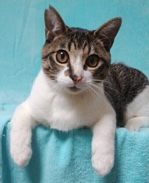 | 特徴(性格など) | 【仮名】太二(たいじ)くん 【性格】愛嬌タップリ♪人馴れ抜群な太二くん☆ 人見知りもなく客人が来ても隠れることなく スリスリゴロゴロの「いらっしゃいませ~!!」 のおもてなしが特技なんです♪ スリッパからでてる靴下をカミカミしたり 毛布をフミフミするのがマイブーム♪ しぐさがカワイイ癒しのにゃんこです♪ 兄弟の太三(たいぞう)くんと 一緒のお家に迎えいれてくださる方を希望します♪ ※1ピキ譲渡不可 |