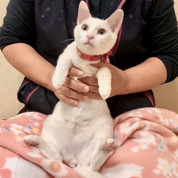 | 特徴(性格など) | ノミダニ駆除済み 検便駆虫済み ワクチン済み 血液検査済み(エイズ・白血病ともに陰性) 避妊去勢手術済み 白猫のももちゃんです。 保護後シャンプーもドライヤーも怖がらないと思ったら、耳が聞こえないようです。 そのせいか物おじなく、犬も猫も平気!元気いっぱいの食いしん坊さんです。 天真爛漫な姿に癒されます。 外では生きていけない子です。 どうか家族に迎えてあげてください。 ネットが苦手な保護主に代わり代理で募集しております。(連絡先は下記記載) お問い合わせは下記の連絡先に「蓮くん愛ちゃんの件」とお問合せ下さいませ。 |